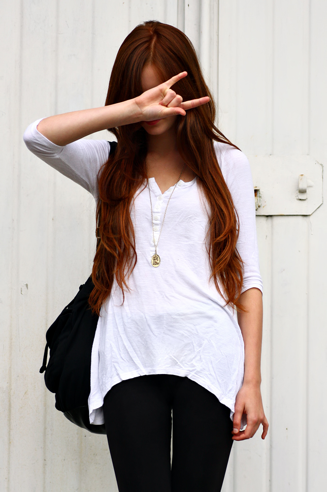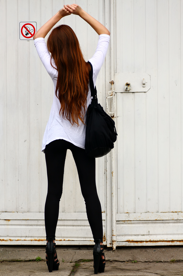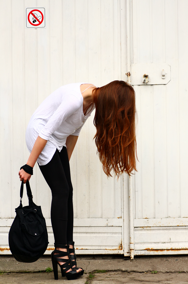 Dziś zestaw na zimniejsze dni. Luźną tunikę i legginsy postanowiłam połączyć z butami na wysokim obcasie, aby stylizacja nie była zbyt mało kobieca ;) Może niektórzy zauważyli zmianę mojego koloru włosów na ciemny rudy. Przyznam, że nigdy nie farbowałam włosów i raczej w najbliższym czasie nie mam takiego zamiaru, więc postanowiłam użyć szamponu koloryzującego (Delia 7.4). Musiałam użyć aż dwóch saszetek, a z pewnością przydałaby się jeszcze jedna. Ciekawa jestem jak długo kolor się utrzyma? Co sądzicie o efekcie?