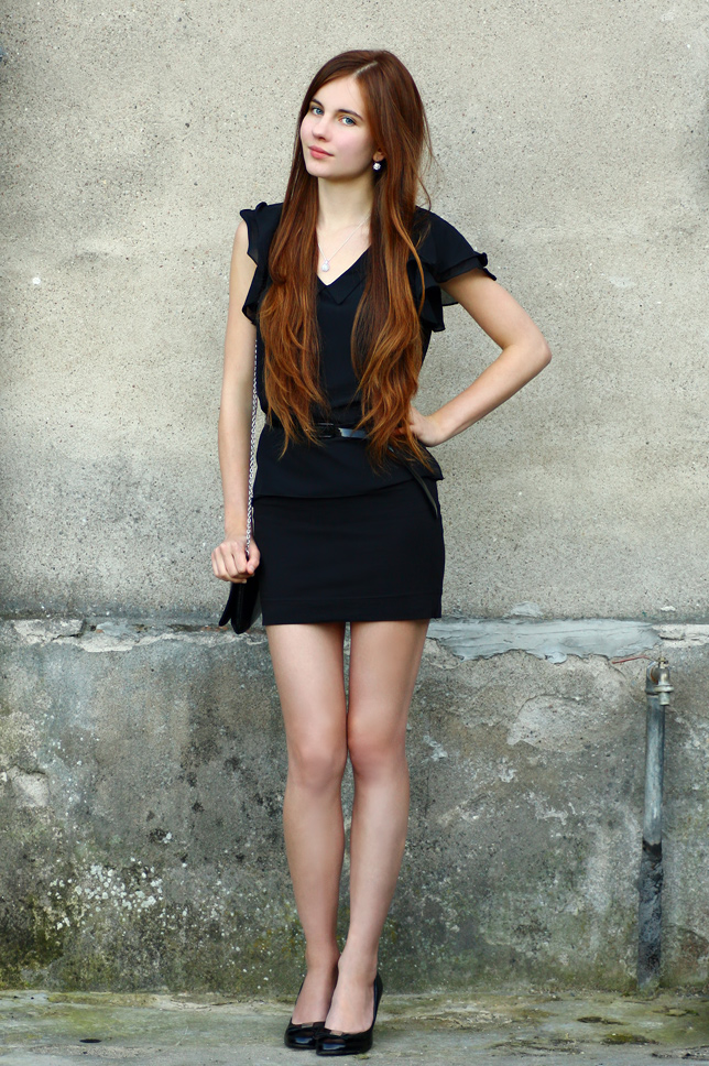 Tym razem stylizacja elegancka - idealna na poważniejsze okazje, ale jednocześnie dziewczęca i lekka. Bluzka pochodzi ze sklepu internetowego (arafeel.com), z którym niedawno podjęłam współpracę i jestem naprawdę zadowolona z jakości. Jest zrobiona z delikatnego materiału i posiada podszewkę. Nie przypomina w żadnym wypadku ubrań typu japan style - no może poza fasonem. Jednak niestety cena też jest odpowiednio wyższa, ale w końcu coś za coś. Postanowiłam połączyć ją z klasyczną czarną mini. Ważną rolę odegrał także pasek, który podkreślił delikatnie talię. Do całości dobrałam srebrną biżuterię oraz torebkę z łańcuszkiem.