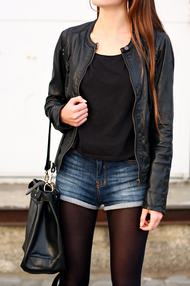 Today I'll show you one of my favorite casual outfits - a very simple, comfortable and feminine, perfect for early autumn :) I set a black loose T-shirt with dark blue denim shorts from Bershka and a black leather jacket from Stradivarius. Thereto I added my favorite autumn shoes - suede ankle boots from Romwe.com, an elegant bag and round earrings. Minimalist ... but sometimes less is more ;)