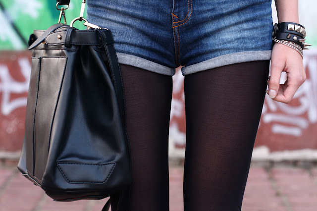 Świetnie to dobrałaś szorty i czarne rajstopki :)