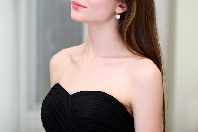In October, I received a very interesting proposition - MsDressy.com - store with unique creations for special occasions offered me to send one of them. I've always wanted to have an elegant long dress... so I agreed! ;) As you know, I love the classics - I've chosen a female model - you can find it <here>. One of the most beautiful things in this dress is a very high split, that makes legs looks beautiful and very long. Many celebrites wears similiar dresses on a big events, eg. Angelina Jolie on the Osars Academy Awards 2012. MsDressy offers custom size sewing. In addition, you can choose almost every color - I decided on black. My only regret is that my prom was a long time ago ... :)