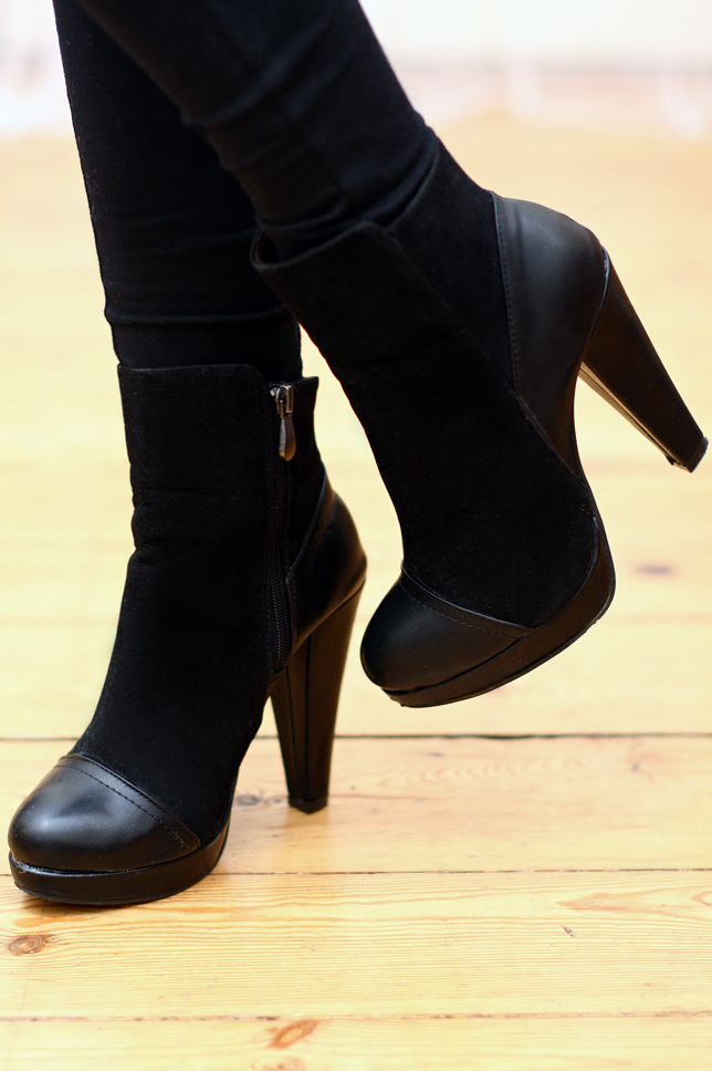 A little differently, but still using my favourite classic colours. I wear trausers rarely, but if I have to, I rather choose leggings or jeggings - first of all, because they are more comfortable. The below one have original, resembling a snake's skin, I bought for a song at ChicNova.com. I determined also to match it with a white top from H&M and loose, youth black jacket from CozBest.com. As you can see, I focused firmly on accessories: a black leather bag from Romwe.com with gold chain, big cicular sunglasses from GiantVintage.com and gold jewellery makes the outfit looks very elegant and feminine character, while suede fitted shoes on a heels from Vivilli.com harmonized perfectly to the leggings.