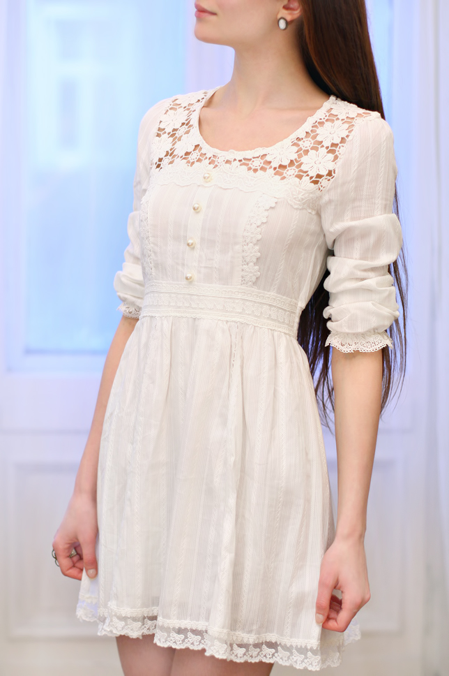 White lace dress from Romwe.com is another wonderful item in my collection. This one looks like a real vintage! :) I very love pretty sleeves and a cute lace back. I like minimalism, so I added thereto only two accessories - oval retro earrings and a big gold ring.