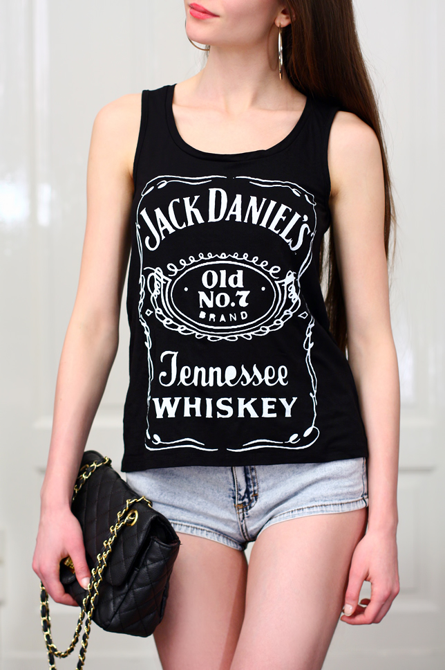 Apparels with Jack Daniel's whiskey theme have many supporters ... and many detractors ;) Generally I don't like patterned blouses, but the black tank top from 2dayslook.com is very cool! Do you know that this label was invented at the early twentieth century? I combined it with denim shorts from H&M and elegant quilted chain handbag from Arafeel.com.