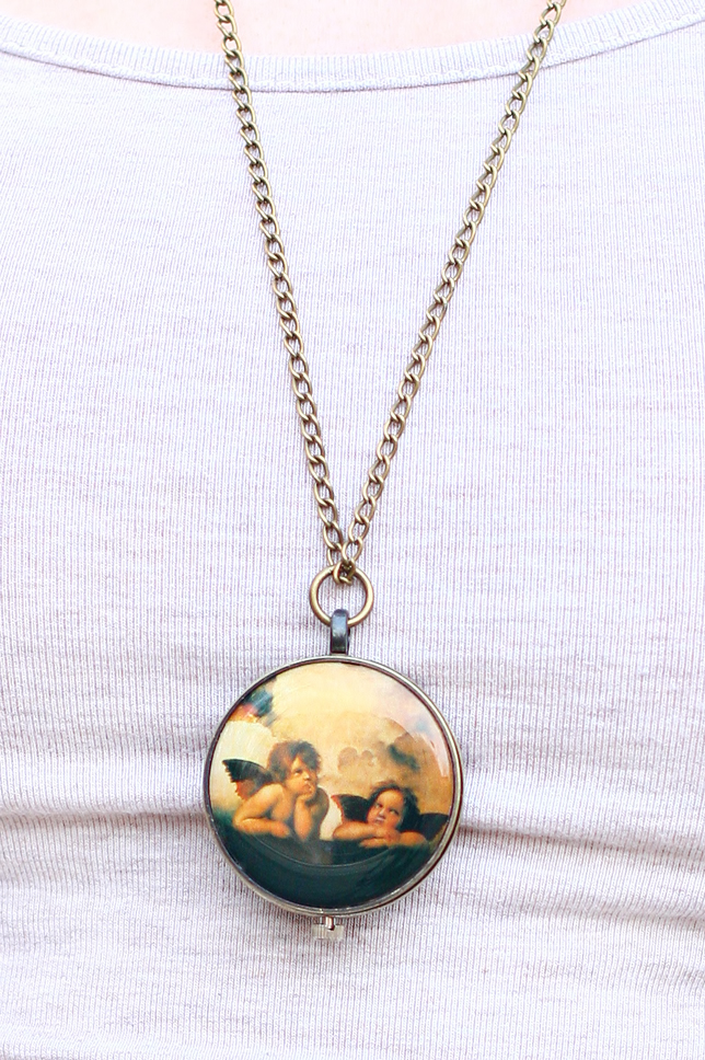 Naszyjnik z okrągłym zegarkiem z aniołkami - BangGood.com