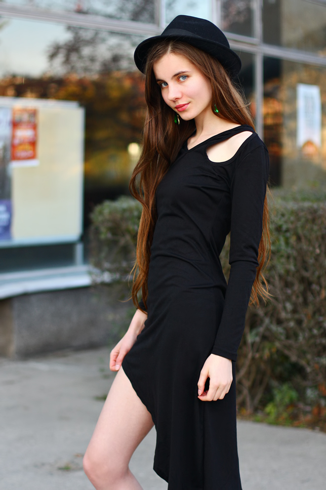 I remember when in 2009 I fell in love with the phenomenal emerald earrings that Angelina Jolie wore at the Oscars. Since then it's been many years, but I still was looking for similar - until I found at DualShine.com ones that you can see below :) I must admit that I wanted them to have detached circles in the center. Thanks to it, the earrings would look almost identical like the actress'es. Do you think it's a good idea? As I wear expressive jewelry, I decided to add thereto basic elements: a black, asymmetrical dress from BangGood.com, a classic hat and very elegant pumps from PersunMall.com which I like very much ;)