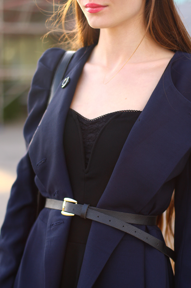 Granatowy płaszcz - BB Fashion (Romwe.com)