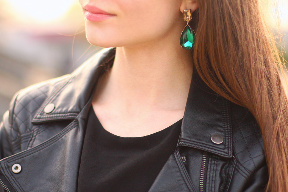 Sequined dresses can be very elegant! This one from TFNC London at first glance looks like a set consisting of a chiffon black top and an ornamented skirt. I love baroque style, so it immediately caught my eye ;) I added thereto a leather jacket from H&M, black pumps from PersunMall.com, a quilted handbag Arafeel.com and emerald earrings from HappinessBoutique.com.