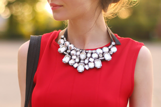 OdpowiedzUsuńBardzo ładna kobieca stylizacja. Czerwona sukienka, szpilki, naszyjnik i okulary są super, a poza tym masz bardzo zgrabne nogi :-)