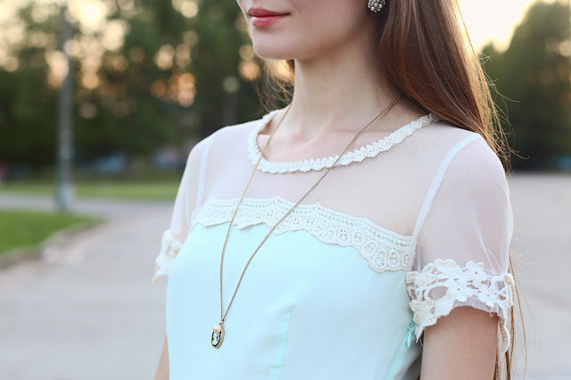 Do you like "mint" clothes? I love so I bought next dress in this cute color - at Chicwish.com. I set it with a subtle lace clutch and nude pumps from PersunMall.com.