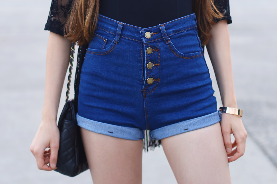 Jeansowe szorty z wysokim stanem - Romwe.com