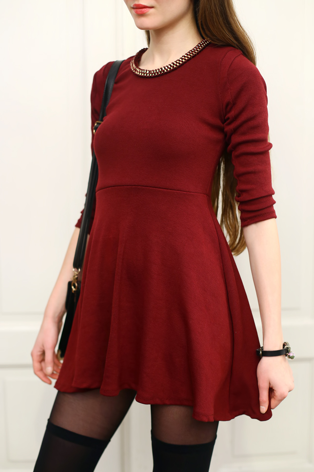 Bordowa rozkloszowana sukienka - Romwe.com