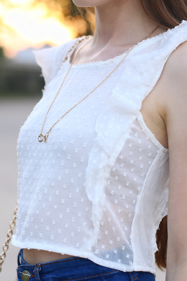 Do lata jeszcze sporo czasu, ale chciałabym się z Wami podzielić wakacyjną stylizacją, którą niedawno znalazłam na dysku. Koronkową białą bluzkę kupiłam na wyprzedaży w jednej z sieciówek. Jak wiecie, uwielbiam takie delikatne dziewczęce fasony. Dobrałam do niej dopasowane jeansowe szorty, beżowe czółenka oraz złoty naszyjnik.