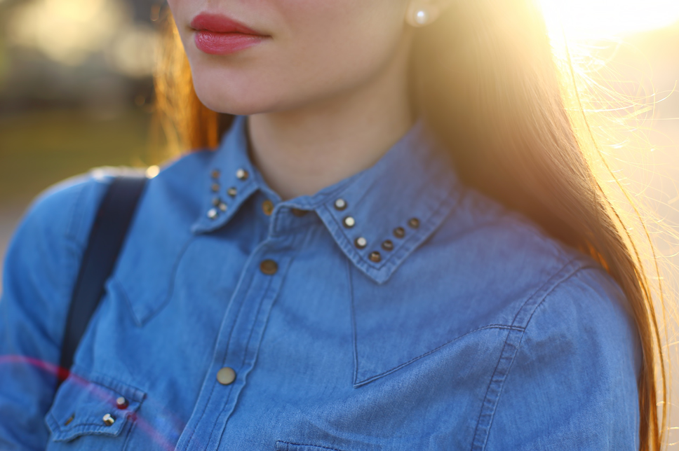 Tak jak przewidywałam, w końcu zrobiło się ciepło! :) Wiosnę powitałam w jeansowej koszuli oraz rozkloszowanej skórzanej spódniczce. Zamiast rajstop, założyłam czarne zakolanówki, które dodały całości dziewczęcego uroku.