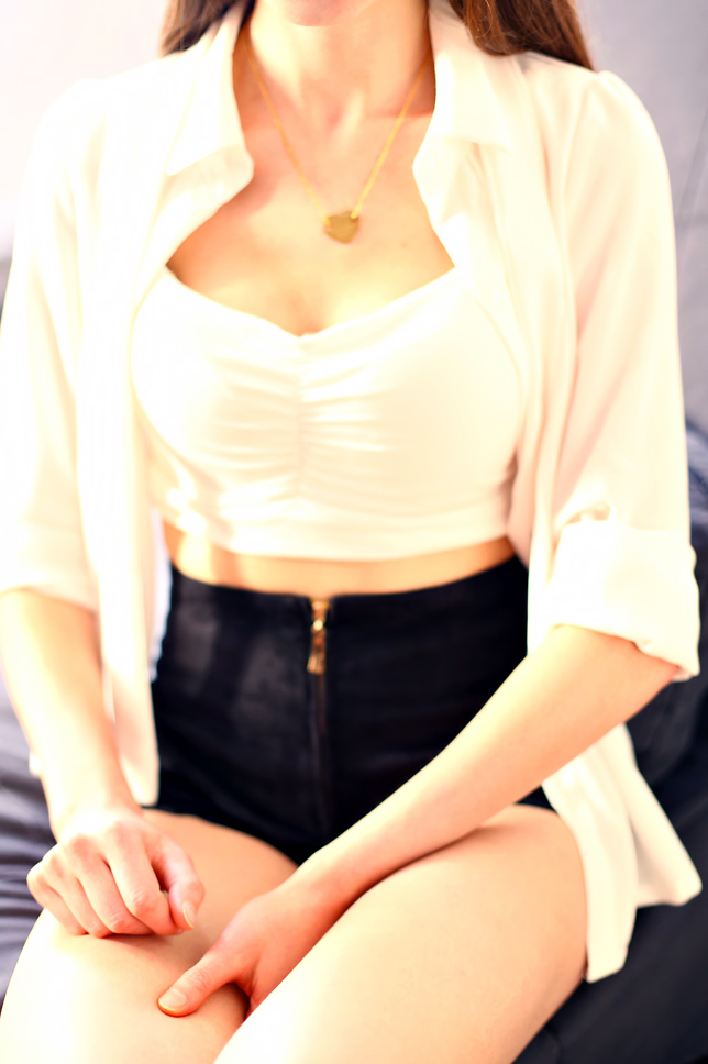 Although we have summer, the weather recently is bad... So today I have for you photos in a different place than usually. The white shirt is a classic that should be in every closet, without regard for the sex of its owner. Many people think that it is perfect only for official situations, but I think that this kind of shirts look great also in a casual sets. This one I found at Oasap.com. I have thereto a crop white top from DressLink.com and black high-waisted suede shorts from Romwe.com. My outfit is simply perfect for the summer, isn't it? :)