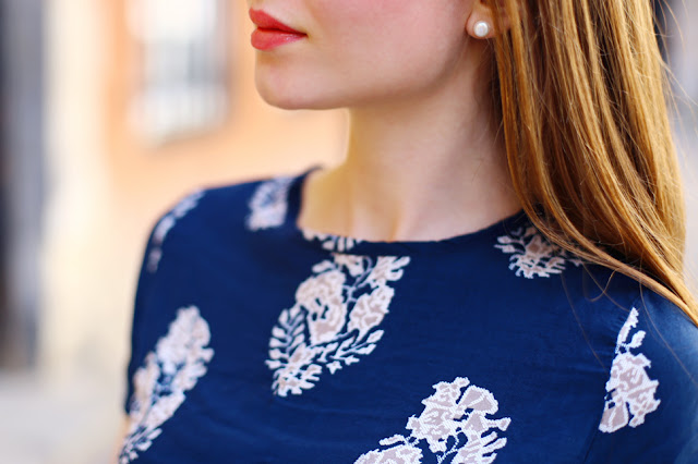 Tak jak obiecywałam, mam dla Was pierwszą z sesji wykonanych podczas pobytu w Warszawie. Jedną z ciekawszych lokalizacji, które przyciągnęły moją uwagę była ulica Kanonia. To urokliwe, stosunkowo kameralne miejsce, w którym nie roi się od setek turystów, mimo że znajduje się w samym centrum stolicy. Unikalna architektura oraz interesująca historia sprawiły, że postanowiłam pozostać tam nieco dłużej. Co ciekawe, na rogu znajduje się najwęższa kamienica w całej Europie. Jej ówczesny właściciel chciał po prostu zaoszczędzić na podatkach - wybudował więc budynek mający zaledwie dwa metry szerokości! Niestety nie uwieczniłam jej na zdjęciach. Pora jednak przejść do opisu stylizacji :) Jak możecie dostrzec, miałam na sobie dwuczęściowy granatowy komplet składający się z krótkiego topu oraz krótkich spodni, kupiony na stronie Dressgal.com. Tego typu zestawy cieszą się ostatnio sporą popularnością: wyglądają uroczo, oryginalnie, a ponadto są idealne na lato. Do swojego dobrałam klasyczne szpilki na platformie oraz delikatną biżuterię.