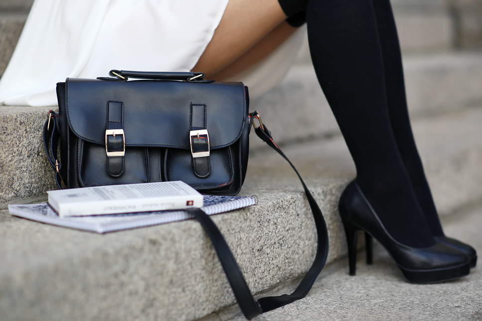 When I was a little girl, like almost every child I loved summer, but after many weeks of relaxation, with growing excitement I waited at the beginning of September. Especially I loved the moment when I walked with my mom to the paper shop. Select a notebook with Winnie the Pooh, or Mickey Mouse? I still remember the smell of plasticine, colored pencils and evenings, when I was looking through books full of secret knowledge. These memories inspired me to create this outfit. My set which consists of a simple white dress from Sheinside.com and black over knee socks looks like a schoolgirl uniform.
