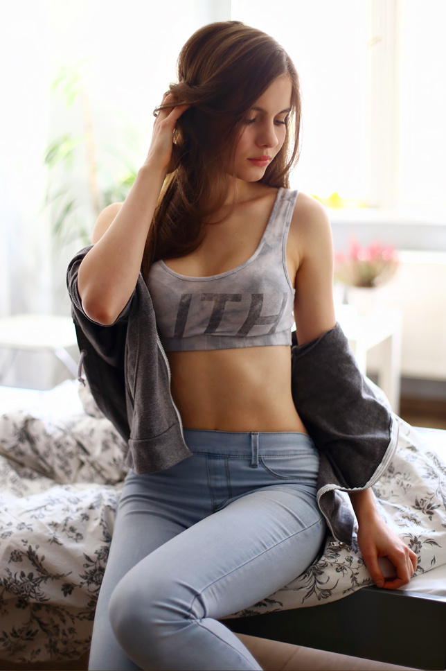 Since I started to live more active, I have worn sports apparel often. I love especially leggings, crop tops and comfortable hoodies (this one I bought at Fivepoundtee.com). You could see this outfit on my Instagram recently - but today I'd like to share with you the rest of the photos. Would you like to see me in sporty looks more often , or prefer a classic, elegant style?
