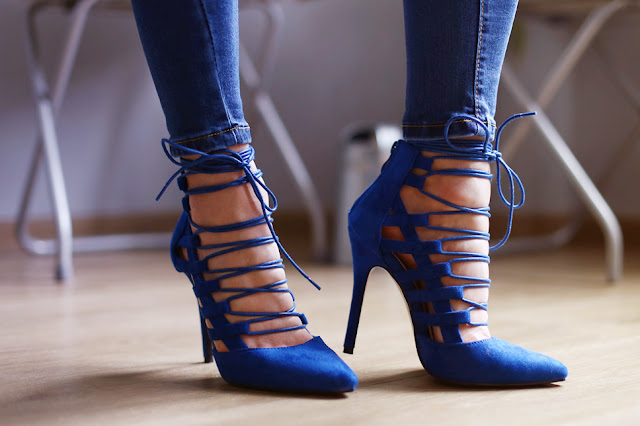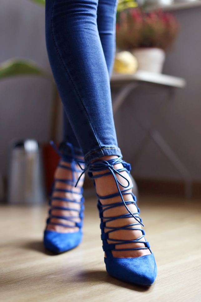 Niebieskie sznurowane szpilki - eButik.pl