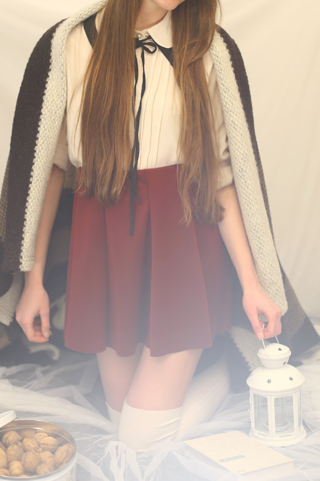 I would like to wish you all the best for Christmas :) Lots of health and happiness - because it is after all the most important. I have prepared for you a special christmas outfit :) I wore a beige shirt with a cute collar, a red skirt from TrendyFine.com and over knee socks. I hope you will like it!